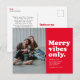 Merry vibes only this holiday season! Send a fun retro-style holiday card with this one-photo design. The throwback blue on navy type reads "merry vibes only" and it also has room for a custom message, name and year. The back features room for a custom message but can be left blank so you can write a more personal Christmas message.