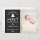 Typographie festive et arbre de Noël, photo unique, carte de vacances en couleur noire.
