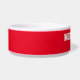 This unique custom pet dog or cat bowl features their name personalized in classic all-caps serif text with a background in red colour. A stylish water and food bowl for your furry family member, available in medium and large sizes.