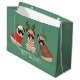 Cute illustration of three Pug dogs dressed in Christmas attire.