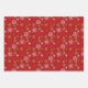 Christmas greetings with mini icons on white, Holly and white dots on black, Multi-colored snowflakes on red wrapping sheet set.