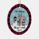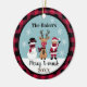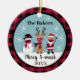 This funny and cute Christmas ornament has a snowman, reindeer and Santa Claus wearing masks. There is a buffalo plaid pattern and lovely red, white, black, and tan colours. The back has a buffalo plaid pattern with snowflakes. You can customize this with a name and the year.