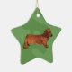 This cute Dachshund is on an ornament with a Christmas green background. You can add text or images to the back as well.