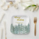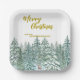 Merry xmas trees forest Modern Gold script Holiday Paper Plate