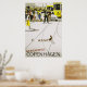 Merveilleux Copenhague. Affiche de voyage vintage danoise. Un policier arrête la circulation pour qu'une mère et ses canards puissent traverser la rue en toute sécurité à Copenhague, au Danemark. Poster Vintage voyage.