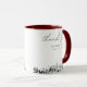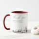 Modern Mesa skyline coffee mug favour gift with "thank you" script. The design showcases a stunning sketch with the ability to customize your names and exact location. Enter the Zazzle design tool for additional customizations.