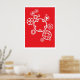 Vintage chainrings and sprockets in white, meshing on a strong red background, in Colgnago colours.