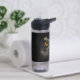 Add a touch of nature to your workouts and walks with this wildlife-inspired hydration bottle, which features the golden gaze of a Spectacled Owl, vignetted on a black background.