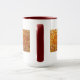 Cette tasse unique de style de "sonnerie" de 15 onces a un bol de soupe à alphabet avec "Souperman" définie avec des nouilles.