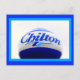 Une photo de clôture d'une tour d'eau blanche et bleue située à Chilton, Wisconsin est le sujet de mes "salutations de Chilton Wisconsin !" carte postale. Une bordure en 2 nuances de bleu complète l'image avant de ma carte postale.
