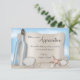Message from a bottle beach thank you flat cards for saying thank you following your beach-themed weddings and shower celebrations. "With our sincere appreciation" :: Elegant invitation-style thank you cards for a beach themed wedding with sea shells, sand dollars, a starfish, and a clear bottle with a message, over a blue sky.