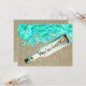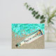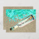 Ocean water waves washing a message in a bottle onto the sparkly sand beach shoreline. The water is carribean turquoise and the sand is a glitter look gold. Personalization is optional.