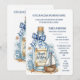 This charming invitation features a delightful ocean theme! A glass bottle on a sandy beach holds a rolled-up birthday message, accompanied by a lovely sailboat. The design includes seashells, starfish, and crashing waves in calming blues and whites. The clear text makes it easy to read, perfect for a memorable beachy summer celebration!