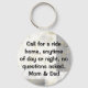 Great key chain, with the perfect message for any teenager. A pretty gold, white, and grey fleur design, with bold black text message, Call for a ride home, anytime of day or night, no questions asked. Mom & Dad. Text is fully customizable to read any way you want. Perfect key chain for your newly licensed teenager.