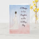 Message to your daughter on her wedding day.  The design is a black bride in a magical wooded area with a peach ground and blue trees and sky.  The words on the inside can be changed.  Thanks to Design Cuts for some of the elements in the design.