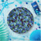 Mosaic of green and blue irregular triangles and hexagons, messy and overlaid. -The dark red colour that divides the shapes can be changed, using the background colour options on the website.