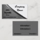 A curved metal surface in stainless steel grunge look chrome and a white space for your company name stands out as a bold, unique 3d look professional business card. Easily customize with your own information. Bold black lettering is shown or easily change the font style and colour. A handsome and strong looking card, especially great for industrial, skilled trades in construction and building occupations and automotive trades. More information can be put on the back as well onto the silver grey background. Printed on paper, not actual metal. A strong business card that stands out from the rest.
