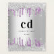 Un arrière - plan métallique à l'aspect faux argenté. Décoré avec des gouttes de parties scintillant violet et faux argent, la peinture goutte à goutte. Personnalisez et ajoutez votre nom, vos initiales monographiques et un titre.