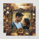 Steampunk themed wedding wedding invitation. Steampunk gold metal gears, flowers and a gold bokeh background. Upload your favourite picture in the personalize area and edit the text on the back to add your own wedding info.