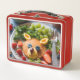 This is a standard metal lunchbox that appears to work just fine. We designed this box ourselves with an uploaded photo and custom text on the front and back. It looks absolutely beautiful except the front of the lunchbox is not centered like it shows in the photo. The print borders don't align with the inset flat part of the box where the preview photo online showed it perfectly centered in there. The back looks nice and centered though.