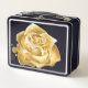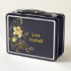 lunchbox black with gold rose on one side and roses with black on the other side. With the words Love yourself