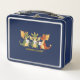 This is a standard metal lunchbox that appears to work just fine. We designed this box ourselves with an uploaded photo and custom text on the front and back. It looks absolutely beautiful except the front of the lunchbox is not centered like it shows in the photo. The print borders don't align with the inset flat part of the box where the preview photo online showed it perfectly centered in there. The back looks nice and centered though.