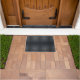 This image depicts a close-up view of a diamond plate surface. The metal is dark grey and has a slightly textured finish. The diamonds are arranged in a repeating pattern, creating a sense of depth and dimension. The surface appears to be slightly worn, with some scratches and imperfections. The overall effect is one of ruggedness and durability.