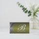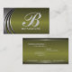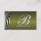 Metal silver grey olive green, monogram eye-catching business cards. A modern design, featuring metal silver grey curves with black outline and your monogram/initial on gradient olive green background. Click on “Customize it” to have a better result and choose colour, and place for your initial. Perfect for many industry fields, construction, insurance, financial, engineers and more.