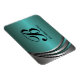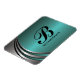 Metal silver grey, teal, monogram business flexible magnet template. A modern design, featuring metal silver grey curves with black outline and your monogram/initial on glowing teal background. Click on “Customize it” to have a better result and choose colour, and place for your initial.