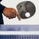Metal with bullet holes background ping pong paddle