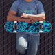 Metallic and crooked illusion, blue to green image skateboard