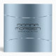 Simple, minimalistic image of a metallic blue background with shiny gold stripes frame.