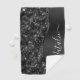 Easily personalize this black brushed metal and glamourous faux glitter patterned golf towel with your own custom name.