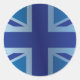 Metallic Blue Classic Union Jack British(UK) Flag Round Sticker