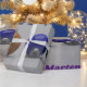 Metallic blue 3d "Merry Christmas" and tree ornaments design with personalized typography to spread festive joy this Christmas.
