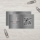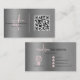 Metallic Brush Steel Silver Script Pink QR Code Business Card