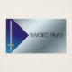 Blue and Silver Metallic Card and Medieval Sword with blue gradient business card template. Royal jewels and gold sword fit for a king. Customizable, font, background colours and more all online.