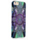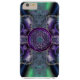 Metallic Celtic Fractal Grid iPhone 6 Case. A Mandelbrot fractal in purple, blue, silver and green, an abstract metallic frame with a Celtic knot at the centre representing strength and protection.