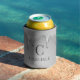 Modern Dripping Metallic Chrome Monogram Monogram Can Cooler with liquid chrome dripping on a silver metallic background with your custom monogram and name. Please contact us at cedarandstring@gmail.com if you need assistance with the design or matching products.