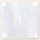 Customize the white curly script monogram font to create your own personalized glass coaster.