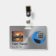 Metallic effect design custom photo id name badge template. Create personalised photo name badges for school club or office.