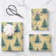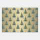 Metallic Gold Christmas Green Trees Pattern Wrapping Paper Sheet
