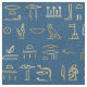 Metallic Gold Egyptian Hieroglyphs on Blue Fabric
