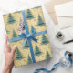 Metallic Gold Green Christmas Trees Pattern Wrapping Paper