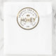 Realistic honey bee and daisy with the word "HONEY" printed in an embossed gold font with drips. Personalize with your apiary name, location and honey net weight. Common honey net weight conversions: 8oz (227g), 12oz (340g), 16oz (454g), 32oz (907g), 5lb (2.27kg).