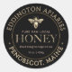 Embossed-style gold queen bee with the word HONEY in 3D metallic gold text on black.