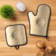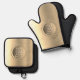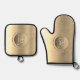 Metallic Gold Steel Engraved Monogram Oven Mitt & Pot Holder Set