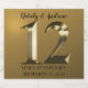 Celebrating 12 years together. Happy 12th wedding anniversary. Golden metallic label