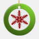 Metallic Green Circle and Red Snowflake Ceramic Ornament