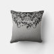 Metallic Grey & Black Floral Lace Throw Pillow